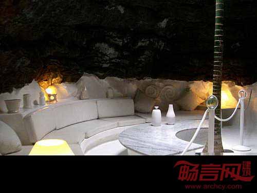 建筑师非凡的地下住宅不仅是对迤逦的海岛风光的敬意,同时也表达了对于艺术创造的热爱。住宅中的一些房间建造在自然的火山“泡沫”中,形成了适合摆放软椅和座位区的圆形前厅。每个房间通过上方熔岩泡沫爆裂形成的天窗,达到了自然采光的目的。