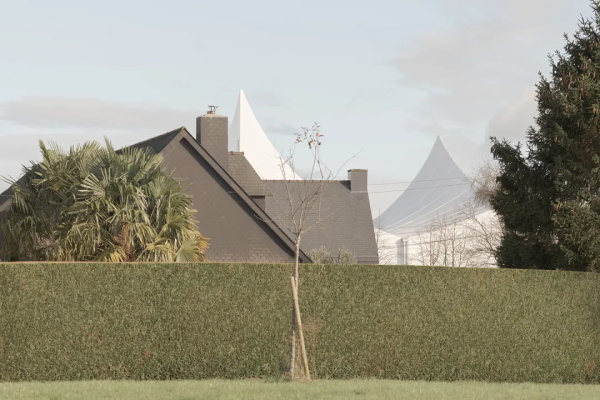 在法国西北部的拉布埃克西耶尔镇(La Bouexiere),当地政府计划新建一座文化与体育中心,以承办区域级赛事。选址紧邻两处现有地标:皮埃尔·德·顾拜旦体育中心与安德烈·布洛文化中心。周边虽分布着体育场、网球场、草地滚球场和BMX赛道,但彼此缺乏联系。新设施将成为重组该偏远城区的契机,打造一个融合现有资源、连接邻近住宅区的体育文化枢纽。城市规划原拟在文化中心南侧新建一条步行道,本项目则建议调整其走向,使其成为组织新旧设施的结构性轴线。