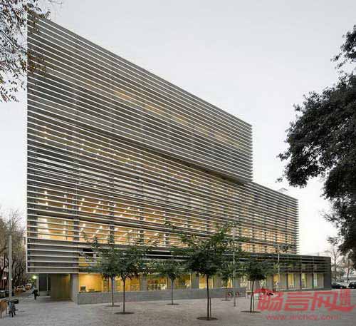 社会保障部办公楼项目位于巴塞罗那Ciutat Vella区。建筑外形是一个受半透明金属网保护的玻璃立方体。