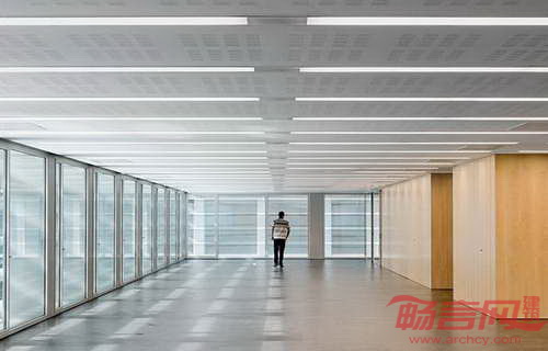 根据西班牙建筑要求,政府办公楼必须尽可能利用自然光,建筑立面设有大玻璃窗,为防护太阳直接辐射,添加了铝制遮阳板条。