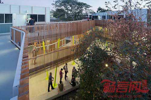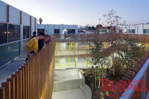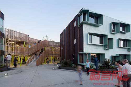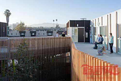 Kevin Daly建筑事务所设计了位于加州圣莫尼卡的百老汇住宅项目。项目坐落于洛杉矶西侧区域,为低收入家庭提供的廉价住宅具有环境友好和经济可持续性的特点。该建筑群在一座现有遮荫大树周围集合了若干经济型、设计相同的住宅楼。项目所在区域的建筑密度和强度正日益增加,一座闲置的养老院被三层、四座、共33户的住宅综合体取代。建筑坐落于街道角落,毗邻一个社区公园,周边交通方式众多,包括未来的Bergamont站世博线路和新近建设的自行车路线。