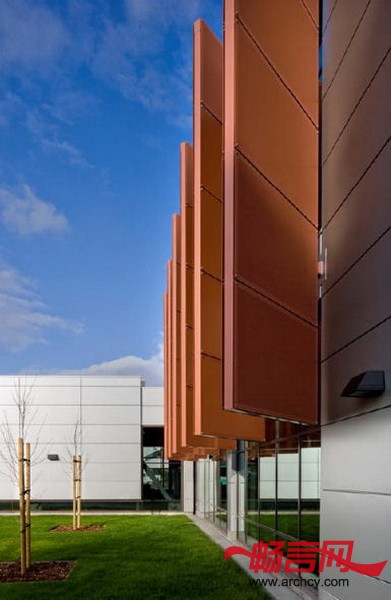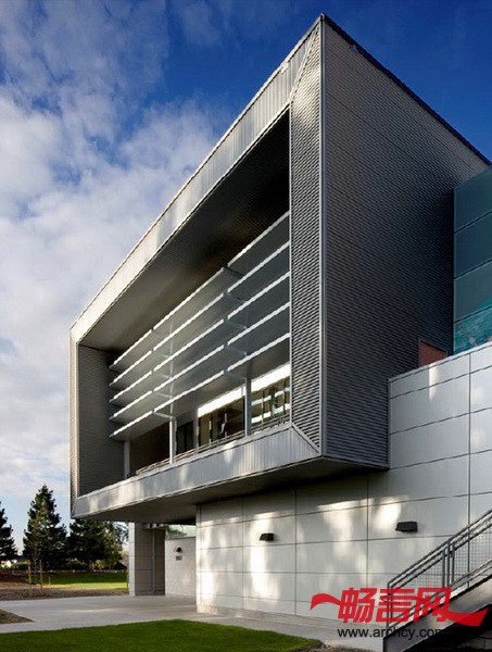 现在的社区中心上面窗户很少,而且周围都是树,与这不同,新建筑有很多的窗户,这让中心里能有更充足的阳光,也更能吸引人们进去。外部材料上,平板和波纹金属板、混凝土石板和大块玻璃的使用不仅让建筑看起来更像一个位于公园里的市民建筑,同时也与当地的轻工业区背景相互融合。奥克兰政府要求这座建筑要达到LEED银级标准,所以,建筑里融合了许多绿色元素,包括:使用太阳能保温板来为非竞赛泳池提供热水、用生态沼泽来利用雨水以及高效的机械系统和可循环的建筑材料等等。
