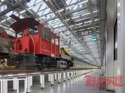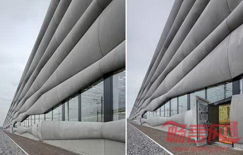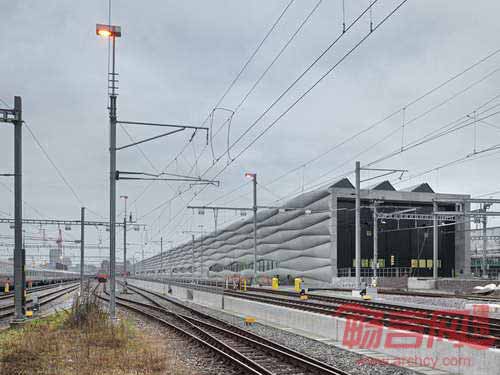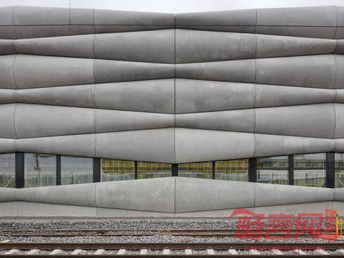 EM2N建筑事务所给位于瑞士苏黎世的铁路设施项目添加了纤维水泥覆层,起到了波涛涌动的活跃视觉效果。整体项目基于场地限制和工程设计,在技术上达到合格标准。然而,为了给乘客一个良好印象,长度较长的建筑南立面需要在表面效果上进行改造。外立面设计契合了齐整的室内区域风格,采用气囊板模块化材料,起到了3D立体式效果。服务设施楼可容纳长达400米的火车,保留所有车厢,无需拆卸。由于体量巨大,建筑对来到苏黎世的游客具有较强烈的视觉影响力。新覆层实现了独特的光影效果,为增建设施带来活力。