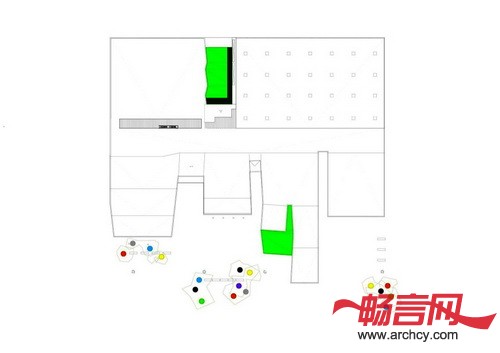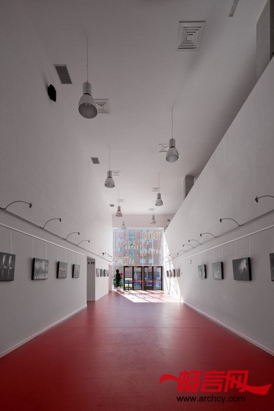 中心并没有使用复杂的幕墙,反而向人展示多元的室内空间,这也让自己看起来比较休闲舒适。也正是因为室内有很多不同功能的空间,中心的室外才能如此独特抢眼,尤其是聚合物混凝土幕墙和朝向各个方向的凹槽能反射出各种色彩的光线,非常漂亮。