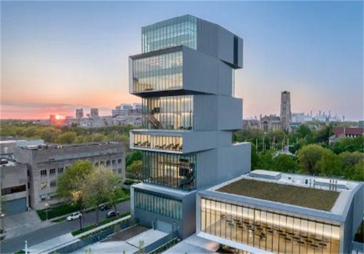 这座位于大学海德公园主校区的10层混合用途建筑容纳了一些重要的学生和教师活动,包括研讨会、讲座和研讨会。该校的设计特点是,包含了芝加哥最长的混凝土悬臂,位于2层楼的基础之上,依靠8层楼的塔楼。塔楼垂直排列成一摞对立的悬臂,其中包含学术“社区”。