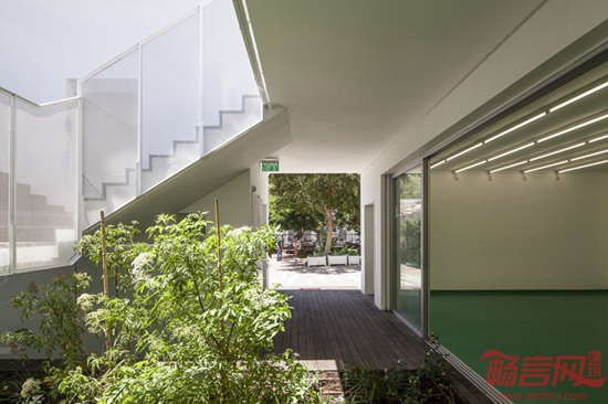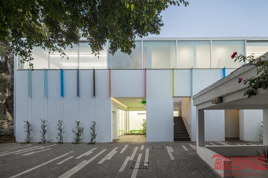 项目位于特拉维夫Neve Tzedek,设计旨在向法国画家马克·夏加尔的名作《飞跃小镇》致敬。这幅画作创作背景是,1917年苏联十月革命,夏加尔的处境危险,画的带着妻子飞着离开家乡,最终1923年回到法国。项目设计理念是让建筑成为城市的缩影,教室成为了迷你公寓,建筑主体模仿中世纪城镇的小房子,连同带有走廊的公共空间,小广场和不期而遇的花园。