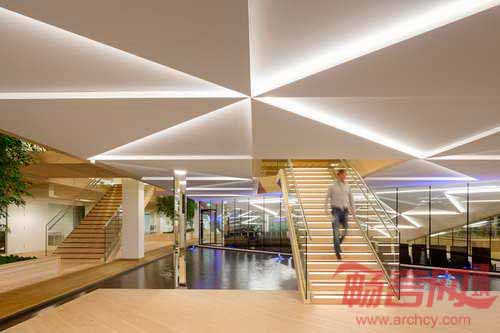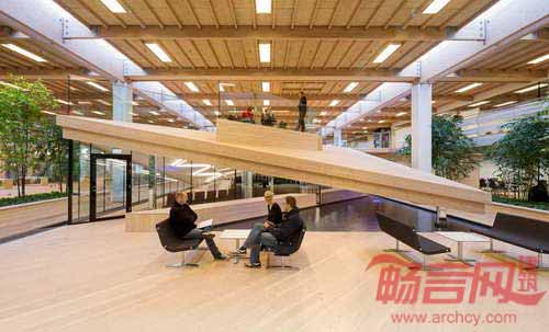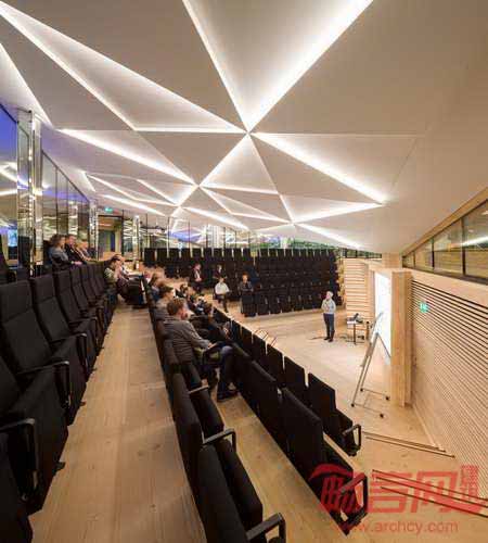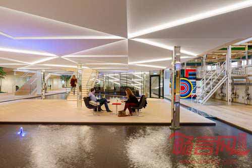 IBC创新工厂是位于丹麦GORI涂料公司内部的一栋教育类型建筑,项目由Schmidt Hammer Lassen建筑公司设计,最近刚刚投入使用。设计公司与Kolding国际商业学院合作,获得了原建于1978年的建筑的设计资格,并赋予建筑当代标准。IBC创新工厂是未来创新者的培训营,室内环境带有室外景观元素,分别是刺激用户感官的火、水、植物、光线、声音和空气。水池上方漂浮了一个花旗松制造的结构,营造了一个用于演讲、团队合作、演出空间,同时可用作安静的学习场所。