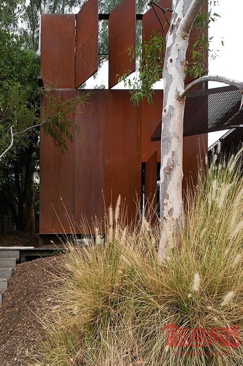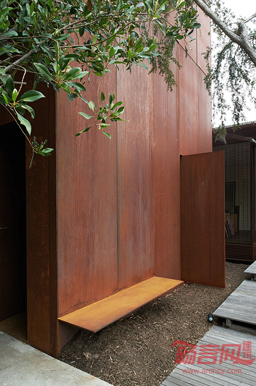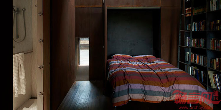 这座由Sean Godsell设计的一室户住宅具有令人屏息凝神的美丽,仅有24平米、一个房间可作为卧室、书房或图书馆,包括一个屋顶露台。这座建筑从外观看是一个铁锈色立方体,6.5米见方,坐落在建筑师已有住宅的花园之中。