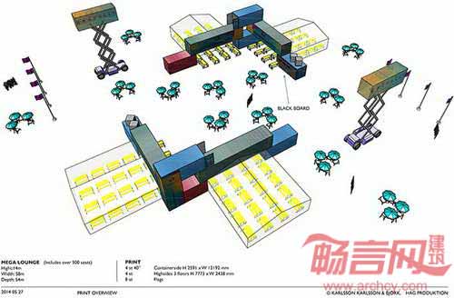 音乐节所在地是斯德哥尔摩南部的一个港口城市。由于临近港口,建筑师考虑应当利用集装箱这一广泛用于临时建筑的材料。