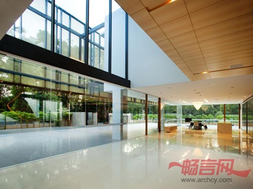 该建筑的主人想让每个楼层面板都能各尽其用,同时又能保持灵活性以适应未来不同的使用需求,因此,起居室、餐厅、家庭区域共同构成了一个大型开放空间。减少使用隔断空间的墙面可以使建筑有更深层次的灵活度。在这个建筑中未设走廊,因为走廊被扩大成为了可使用的空间,并且用来分隔房间的墙可以有多种用途。