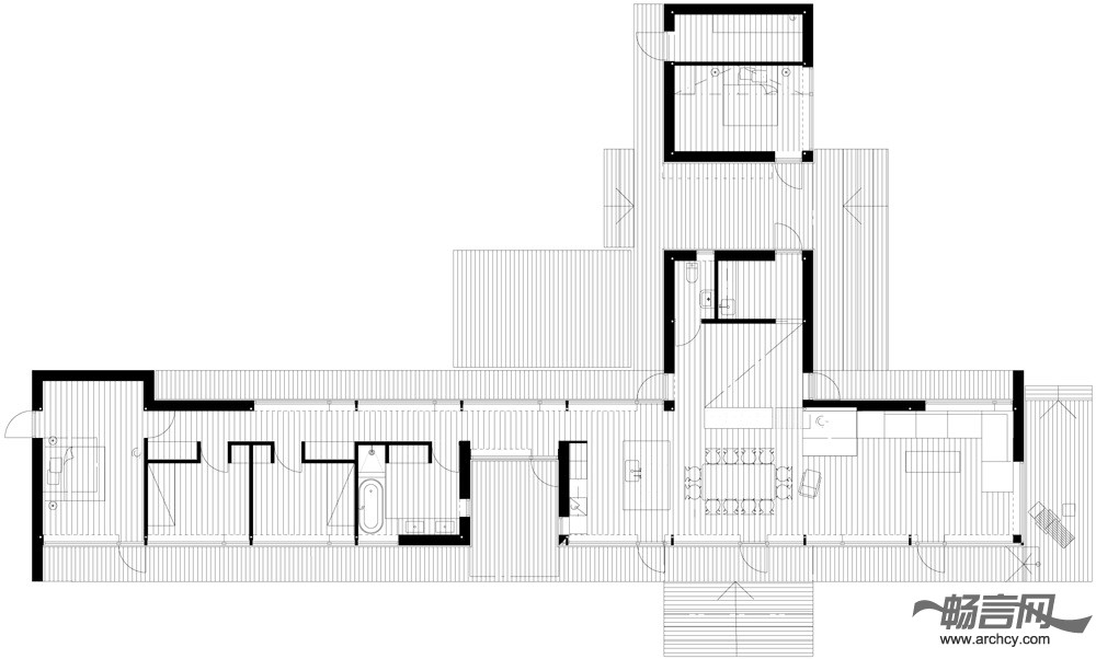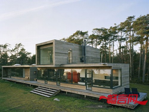 Plus别墅由瑞典Waldemarson Berglund建筑事务所设计,共有两层,它的幕墙完全由松木做成,松木只是简单的锯开之后就使用了,而且会随着时间的推移变成灰色。