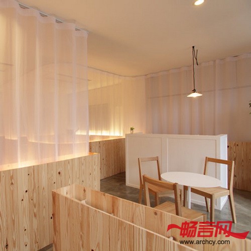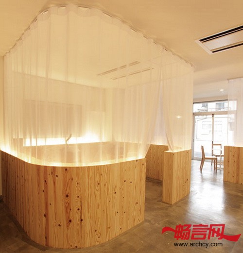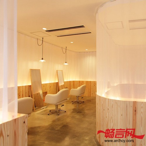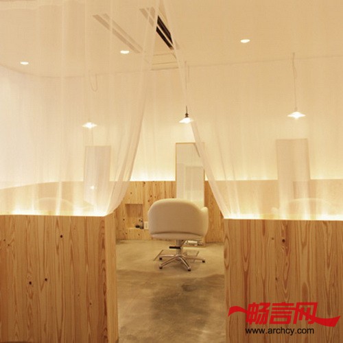 日本Maker建筑事务所完成了这个非常发廊(Hair Very)的设计。发廊的特色就是它里面有用木板围成的小隔间,小隔间用薄纱与其它空间分隔开来。