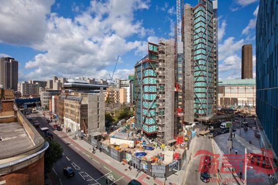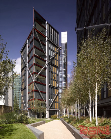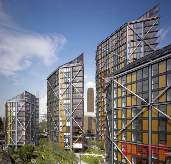 伦敦NEO Bankside大楼由罗杰斯建筑事务所设计,项目入围了2015年RIBA建筑奖。是四个六角形的建筑,包括217个住宅单元从12层到24层,有六层是办公室。位置临近泰特现代美术馆。钢铁和玻璃展馆完全适合河岸景观;冬季花园的氧化红魔呼应的泰特现代美术馆和附近的Blackfriars桥,而外部的木材复合板和百叶窗口建设一个温暖,住宅的感觉。该建筑独特的外部支撑系统已取消了内部结构墙的需要,并创建高度灵活的内部空间公寓。冬季花园的南北部的断头单层玻璃阳台是封闭的,主体结构悬挑的是大型滑动屏幕的轻量级的甲板。他们作为封闭的阳台或室内生活空间的延伸。该建筑在城市环境中创建一个新的微生态环境,优雅而宁静。