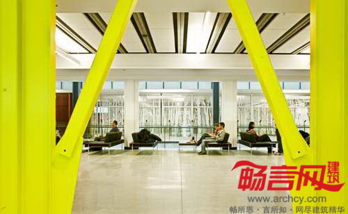 整个建筑的透明度、明亮度很高,特别是由北美四大会计师事务所(德勤、普华永道、毕马威、安永)资助的新会议中心更是明亮得无以复加。会议中心镶有不同透明度的玻璃板,象征了商学院的更新与复兴。