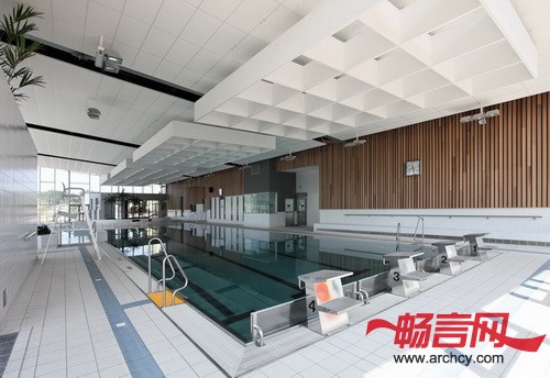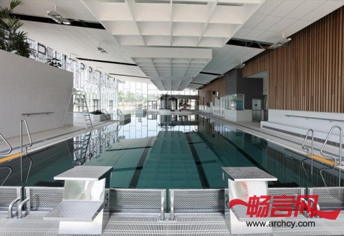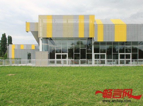 这座结构紧凑的建筑被分成两个不同的区域:南面的部分包括多功能室、更衣室和技术用房;北面的部分是水上运动大厅。建筑的设计也将环保考虑了进去。