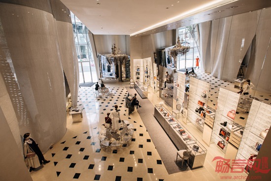 建筑师Christian de Portzamparc设计了韩国首尔迪奥时尚店,店内出售男女时装和配件。项目坐落于奢侈品店林立的江南区,在一个街角位置上,除了商品陈设还包含展区和咖啡厅。建筑采用雕塑外感的白色玻纤板材,每块有20米高,具有缓和的弧度,符合法国迪奥时装的流线形态。一部分板材构成建筑外墙,另外一部分构成六层商店的弧形入口。