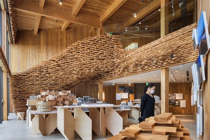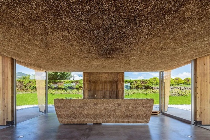 和当地人一起收集的茅草被制作成不同形状的捆,直径从0.9厘米到15厘米不等,长度从24到60厘米不等。在来自日本各地的工人的合作下,建筑拥有了以茅草搭建的天花板和屋檐,从而弥漫着茅草的香气。这是一种不同于典型茅草屋顶所能营造的体验。