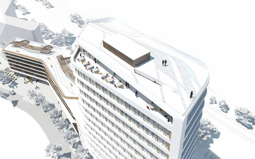 UNStudio建筑事务所同OR ELSE景观事务所合作共同在德国慕尼黑一座混合功能建筑中成功中标。BaumkirchenMitte建筑高度为60米,将涵盖住宅和办公项目,成为一个标志性地标。UNStudio事务所建筑师Ben Van Berkel表示,“在建筑外立面设计中,我们选择了清晰有节制的设计,融入相当多的细部处理。横向条状装饰从远处看非常清晰明显,当人们从近处观察,会发现细节相当精致细腻。”