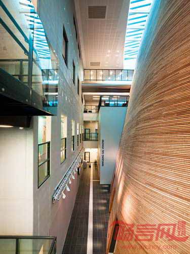 Vagen高级中学位于挪威Sandnes市中心,学校容纳了800名学生,提供一系列课程教育,包括媒体信息、绘画设计、艺术工艺、音乐、舞蹈和戏剧。项目由奥斯陆Link Arkitektur事务所设计,涵盖面积达22500平米,包括一座体育场、拥有380作为的讲厅、多功能排练厅、体育训练室。