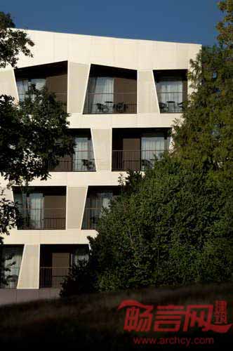 项目由MVA建筑事务所设计,酒店公共和配套区域清晰地进行了划分。酒店包含的126个房间分布在三栋较小建筑中,公共设施区域安排在底层空间。
