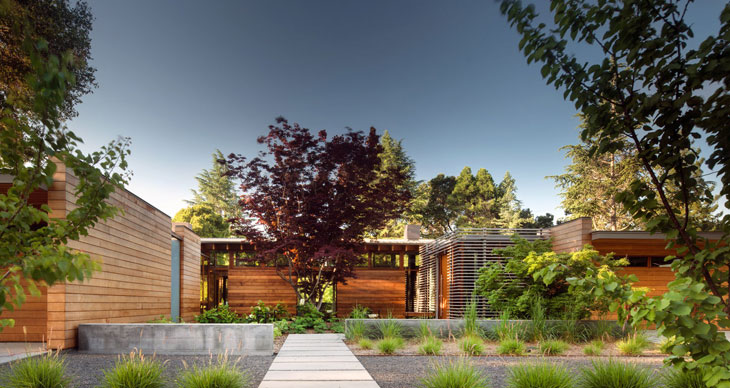 Bohin Cywinski Jackson公司设计了美国加州Los Altos的硅谷住宅。这座建筑带有冥想花园和游泳池,家庭住宅附带主卧和客房,坐落于一处绿树点缀的成熟住宅区中。设计师表示,项目周边有高大的树木和住宅楼,具有良好的私密性,让年轻的业主家庭免受城市喧嚣打扰。设计师公司在宾州、西雅图和旧金山分别有三个公司。这座一层建筑布局和细部都很简洁,同周边环境有千丝万缕的关系,营造出沉静、安详的住所氛围。