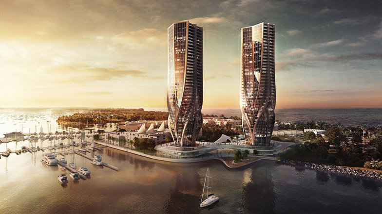 扎哈·哈迪德完成了其在澳洲的第二个项目——位于昆士兰黄金海岸的双子塔楼。扎哈受到澳洲Sunland房产集团委托接受了该项目。两座建筑各有44层,容纳370套住宅和一家含有69个套房的豪华酒店。建筑带有雕塑性弧线玻璃外形,令人联想起肌肉线条。业主表示,每个住宅楼都具有有机、生动的外形,配有流线型线条,与下方锥形基地相连接,营造出流动和韵律。