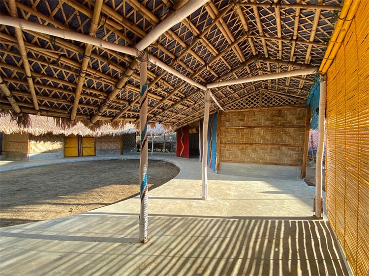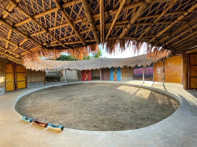 建筑师偏爱当地可用的简单材料,由于项目的建设速度快,情况紧急,建筑采用的是未经处理的竹子。这种材料在几年内就会腐烂,将使用处理过的竹子替代。屋顶材料由稻草和防水油布组成,这种复合材料必须在一年内更换,并用耐用材料替换,以便长期使用。