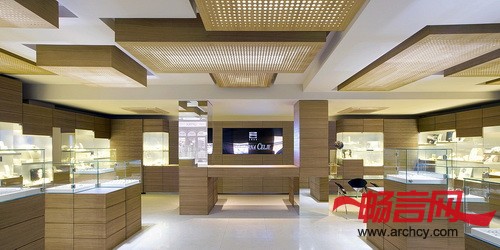 该项目的设计灵感来源于银行的保险箱,它结实、保护性好,适合存放贵重的珠宝。设计师把这些箱子设计成模块的风格,并在整个商店里重复这一个风格,这就形成了一种连续和反复的感觉。