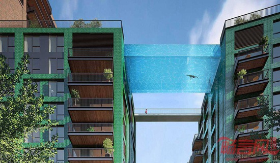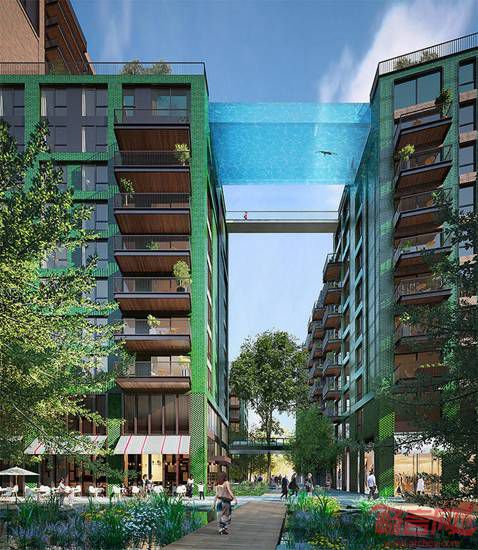 伦敦南部Nine Elms将建造一个长27米的玻璃池底泳池。项目悬吊在10层楼的高度上,将连接两座公寓楼,使用者可以在建筑之间游泳穿梭。泳池是使馆花园遗产建筑的一部分,该项目由Ballymore公司开发,由HAL建筑事务所设计,奥雅纳工程集团参与了该项目。公寓楼包括2000套住宅,包括居家办公区、健身房和屋顶酒吧。