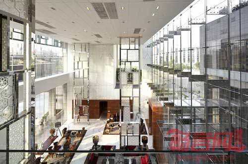 在为印度泰姬集团设计了一系列项目后,WOW建筑事务所完成了位于印度古尔冈的泰姬Vivanta酒店设计。设计难度在于寻找合适的设计手法,屏蔽周边环境嘈杂噪音的同时,塑造传统印度空间体验。酒店理应为游客提供安全、舒适、放松的空间。Vivanta酒店设计参考南亚传统宫廷建筑模式,设置了一系列相互连接的庭院和多层公共空间。酒店中央设有景观庭院,周围的公共室内区域保持独立,视觉上通过玻璃墙面得到连接。
