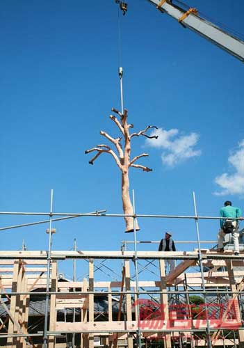 设计师表示,设计的主题在于利用这些树木,同时为业主营造新的居住空间。砍树过程中,业主甚至邀请了神道教教士举行了驱邪仪式。