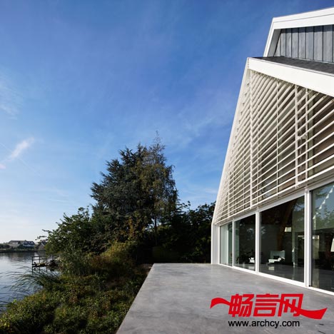 这样,从“教堂里的住宅”就可以直接欣赏到窗外的美丽景观。而十字型翼部就成为了房外的公共区域和里面住宅之间的过度地带。