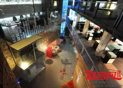 建筑的大门高达10米,材料是耐候钢,给人肃然的第一印象。入口坡道象征着从街道到达建筑中庭的连贯感;主工作室和前部花园之间设置了曲折回环的桥梁;建筑外墙覆层采用了红砂岩,其中的蚀刻描绘出了公司的侧重领域。