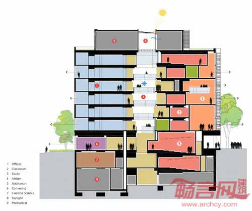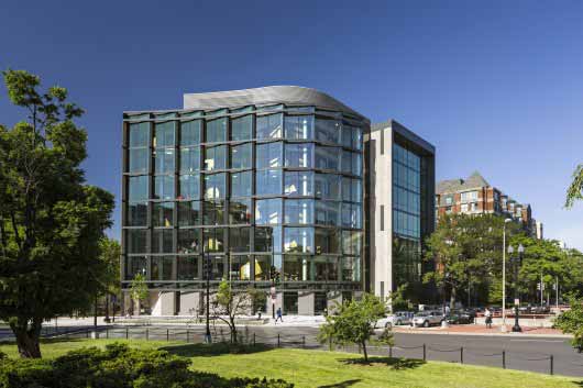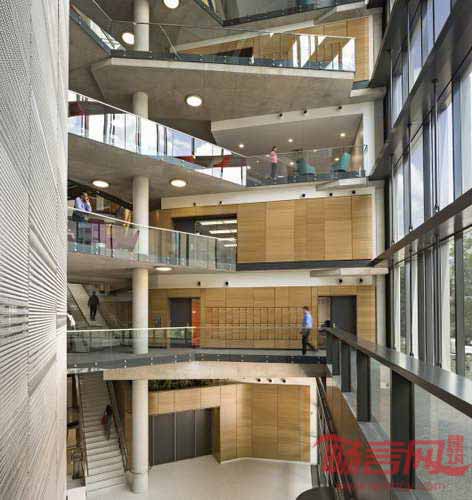 Payette建筑事务所设计了位于美国华盛顿特区的米尔肯研究所公共健康学院楼。成立于1997年的公共健康学院此前有过数次迁址。本项目旨在创造属于学院的公共地标。建筑包含学术部门和学院行政办公空间、15个自主学习教室、3个礼堂、会议中心,并设立了可收缩的墙壁,方便空间的使用灵活性。此外,建筑涵盖多个学生自习、休息和用餐空间。