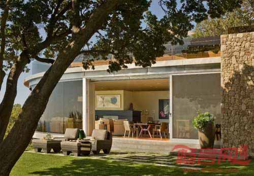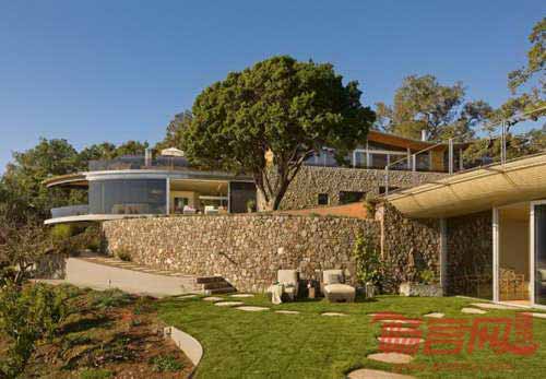 Carver + Schicketanz公司为加州Big Sur一对退休夫妇设计了滨海房屋。场地南北端坡地上栽种了雄伟的橡树,西面是广阔无垠的太平洋。巨大的岩石基础将建筑结构与山坡地形连接起来,坚实地形与建筑使用的轻型钢材和玻璃元素形成鲜明对照。