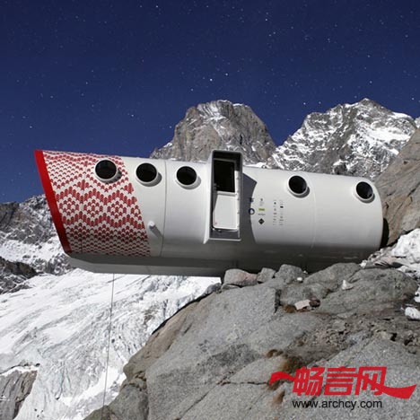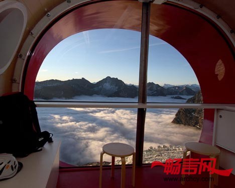 阿尔卑斯山上的登山爱好者现在可以在一个悬臂在山崖上的车厢形小屋里过夜了。