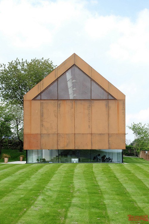 McGarry-Moon建筑事务所完成了其位于北爱尔兰Kilrea的工作室设计,带有三倍层高的办公空间位于草地环境中,并设有预制铁锈板山形墙遮盖物。办公室位于事务所两位创始人拥有的Fallahogey住宅花园中,2005年由二人亲自设计。原先他们在住宅内办公,由于规模扩大,需要更大空间,于是在原址上扩建。