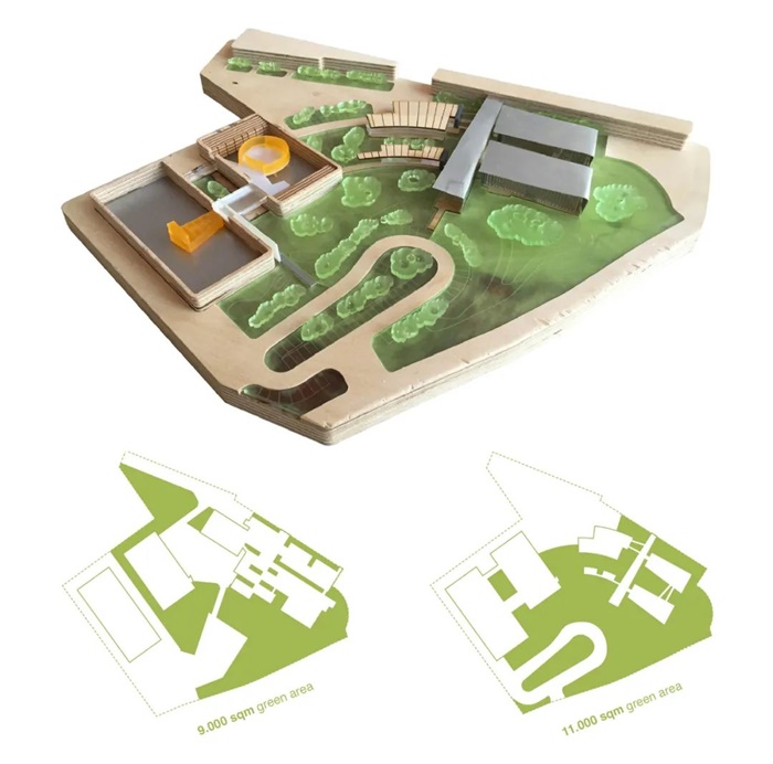 从建筑工程的角度来看,该项目的干预方法是以“再生”为重点,用轻质的和可恢复原状的新建筑取代现有的工业厂房。在景观层面,新增的植物种植和绿化区域使场地与周围的农田、山丘“重新缝合”。