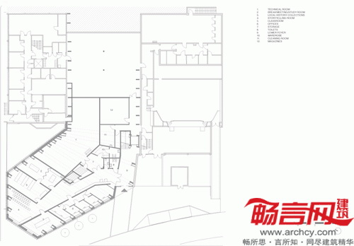 楼梯通往的负一层包含了办公室、教室和本地历史藏品。