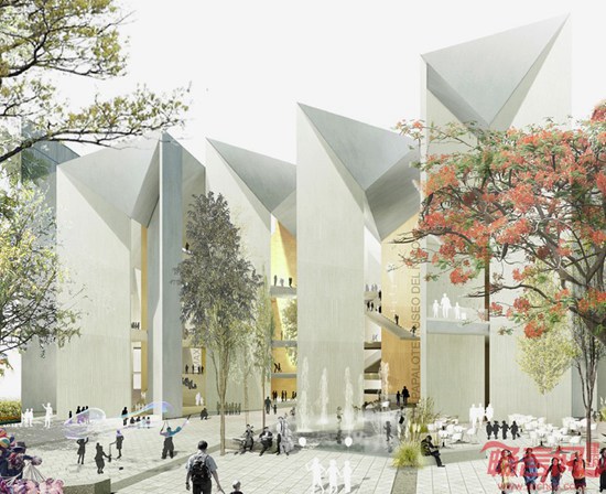 项目位于墨西哥Iztapalapa,日前其优胜设计方案对外公布。组委会一致同意将第一名授予巴塞罗那MX-SI事务所和SPRB事务所合作完成的方案。竞赛吸引了171个投标方案,预计博物馆将于2017年建成。相邻广场和新建建筑一层之间设有连贯的公共空间,成为街道层面上的聚集场所,对城市背景做出回应。建筑从街道缩进产生的城市广场也成了博物馆空间的延伸。