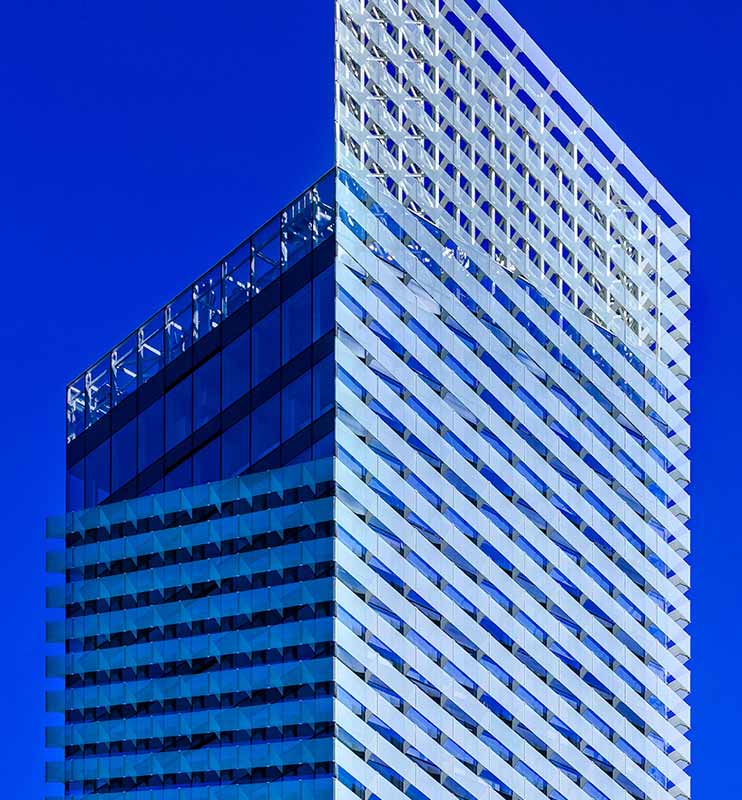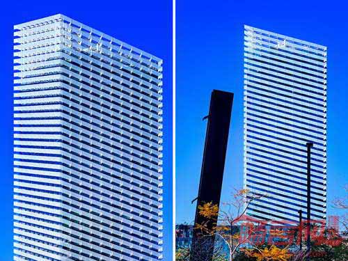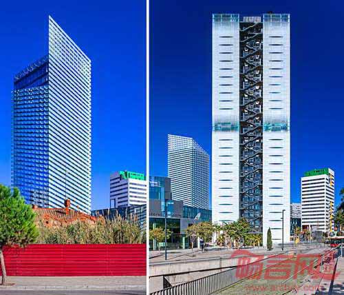 西班牙时装及香水企业PUIG总部大楼Rafael Moneo建筑事务所设计,坐落于由伊藤丰雄、让·努维尔等著名建筑师设计的巴塞罗那欧罗巴广场建筑群区域中,是当中相当醒目的高层建筑。这座棱角鲜明的摩天大楼由深色玻璃坚实结构组成,外立面表面覆盖白色装饰板。在蓝天的映衬下,PUIG总部大楼以优雅的姿态卓然屹立在城市建筑群中。