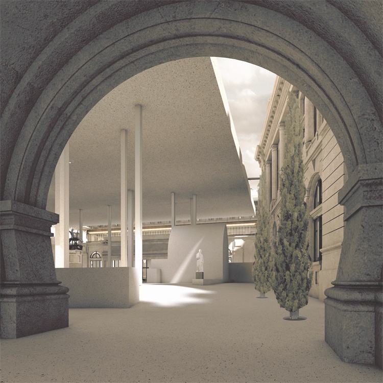 (1)降低地下层,并将大厅的壁龛进行侧向扩建;