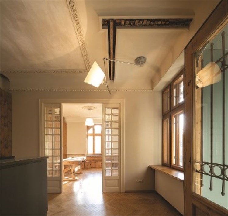 该项目地方设计竞赛的主要内容是将这座住宅改造为OAR布加勒斯特分会总部,并提供办公室、图书室、会议空间和工作室。其场地属于布加勒斯特的一处历史地区,位于一个不规则的城市广场中。在这个非正交的环境中,建筑特立独行地呈现出不对位关系,反而赋予了它一种雅致的外观,成为两次大战期间城市留存至今的一块碎片。我们试图不做明显的干预,所以项目的要点就是找到让干预措施不易察觉的限度。于是项目构建了这个在教育和居住功能之间的“中枢”,并从地下室到公共街道建立了与塞万提斯高中的直接通道。