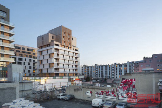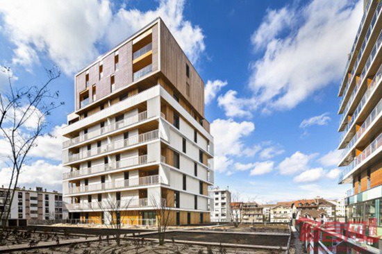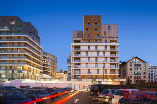 项目坐落于法国阿尔卑斯山脉沿线Annemasse的老城中心,涵盖社会住宅、公寓、酒店住宅、酒店、办公、商店和影院。项目由Ameller, Dubois & Associes公司设计,一层是商业设施,二到九层是公寓,为社区提供了一条龙活动空间。公寓楼由两部分组成,下层为紧凑型水平线条空间,阳台设在边角。上层设有结构简单的公寓。材料的不同选择进一步凸显了空间外观的两重型特点。