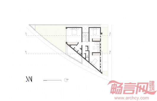 开放区和不透明区域是为了见光和保护隐私。因此,东南外立面完全关闭,避免直射的阳光,也因此挡住了来自主街的视野。对立面作为服务走廊,和连接的房子隔开。这样,其他两面包含开放区,窗户,一面有更小的水平元素俯视小巷,另一面有连续的窗户俯视花园。