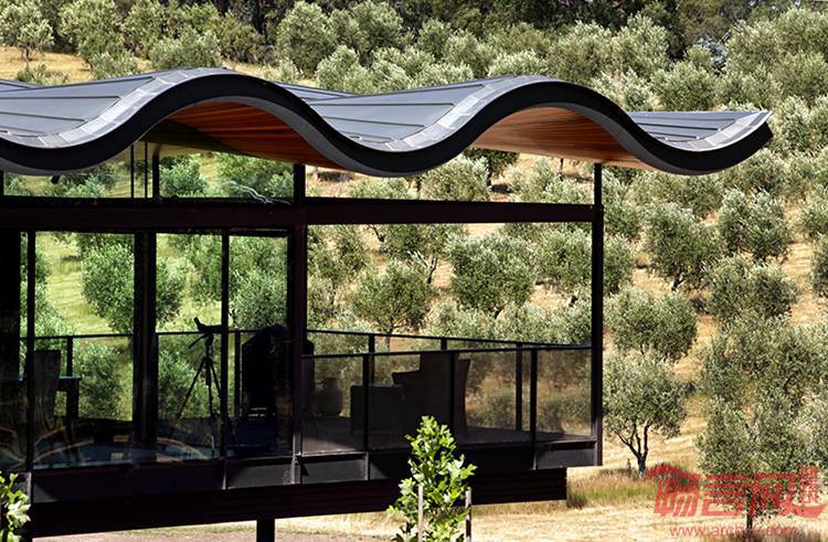 Lauriston住宅是位于澳大利亚维多利亚州Kyton的一个私人项目。建筑两旁带有对称的橄榄树,建造采用了被动式绿色设计,材料采用了当地常见的材质和纹理。项目由Seeley事务所完成,这一乡村住宅的显著特色是其波浪形的屋面,构成了清晰的结构韵律。