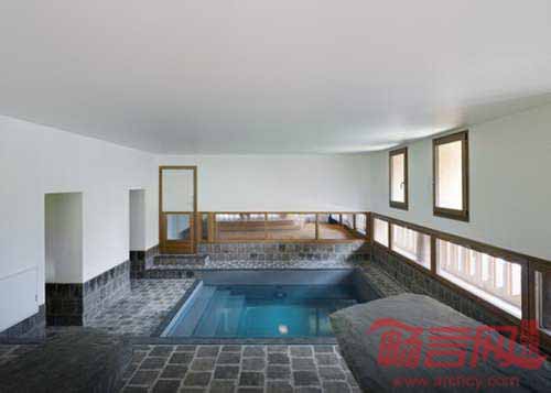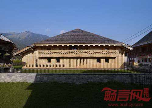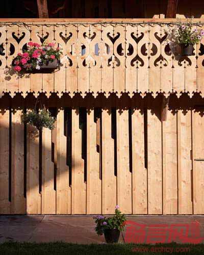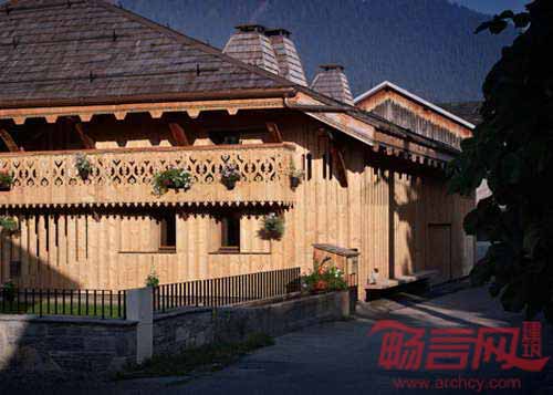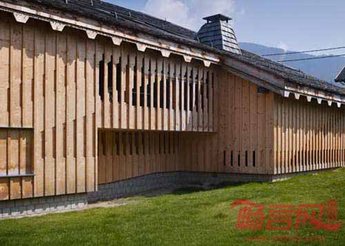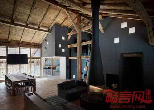 典型高山谷仓中,木板条之间的缝隙让空气进入室内,从而干燥草垛,在这栋别墅内部,木板的间隔作用是使光线进入室内。