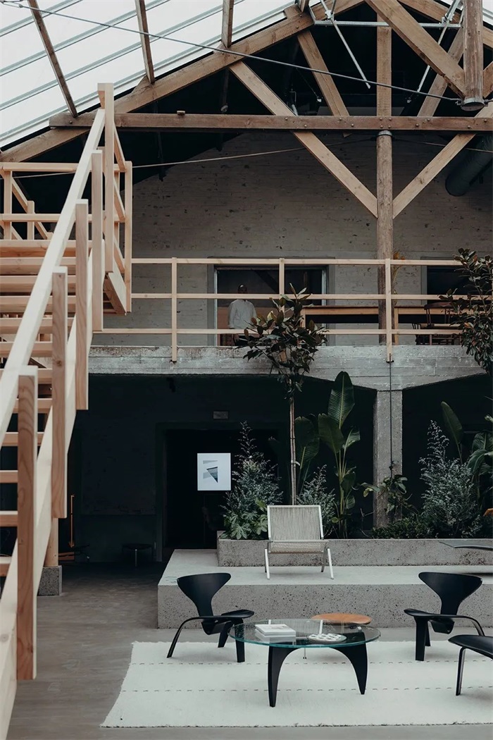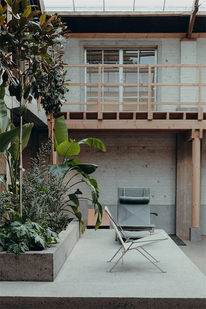 该建筑一直被Laurence的家人和当地居民称为“toebak工厂”。虽然这里的烟草已经不复存在,但人们对于“工厂”的印象却一直保留了下来。为了向建筑的历史致敬,Going East团队将植物学的概念引入到了改造设计当中,它不仅暗示了所有干预策略的灵感都从烟草加工的过程开始,同时也代表了室外和中庭新温室屋顶下的绿色环境。