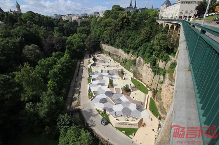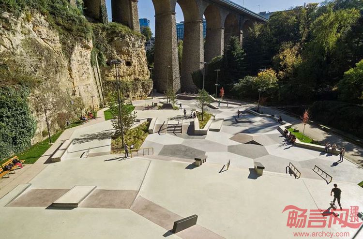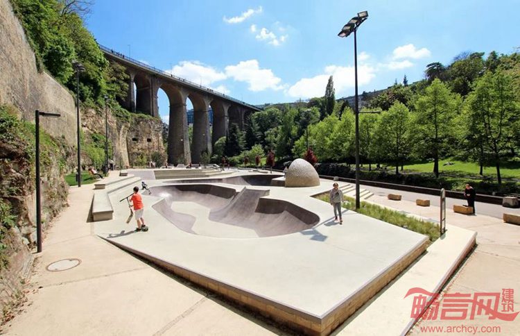 法国Constructo公司设计了卢森堡滑板公园。项目参照联合国教科文组织世界遗产——Vauban城堡,进行了重新诠释。项目坐落于Peitruss峡谷公园,充当了老城区和新城区之间的天然界限。滑板公园面积2750平方米,涵盖小型碗池,较大的球形碗池,带有金属管的滑板池,道路穹顶和道路广场。