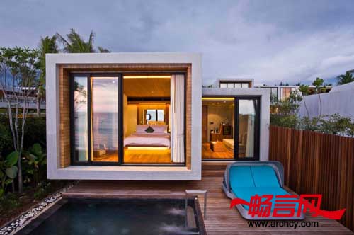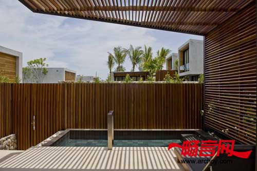这家豪华的酒店由VaSLab事务所设计,拥有8幢形状不同的套房和别墅,面积从753平方英尺到1560平方英尺不等,共建于一块1.2英亩的地皮上。